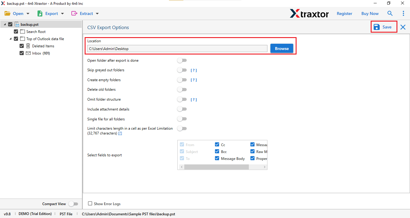 Step 6. Browse the destination location & Click on the “Save” button.