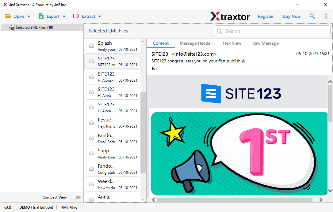Step 3. Preview your EML files as emails on this screen.