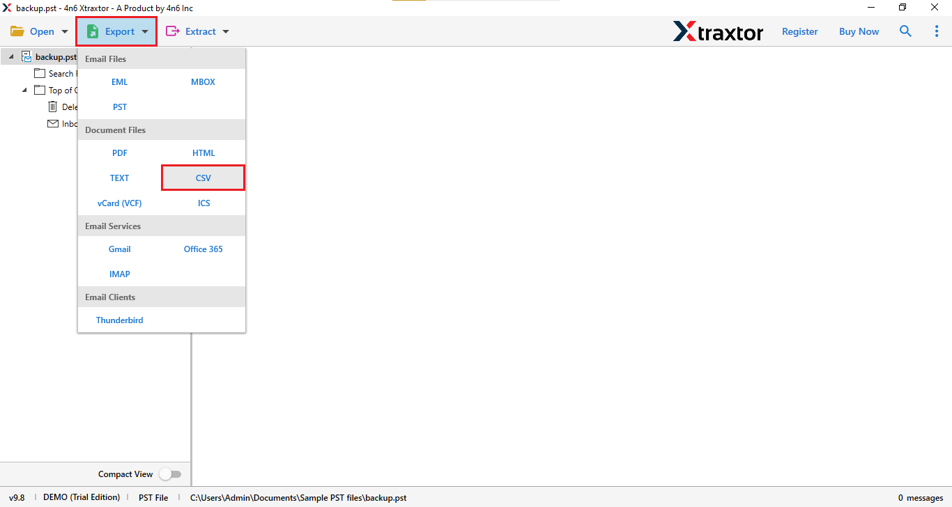 Step 4. Now, click on the “Export” button & choose CSV option.